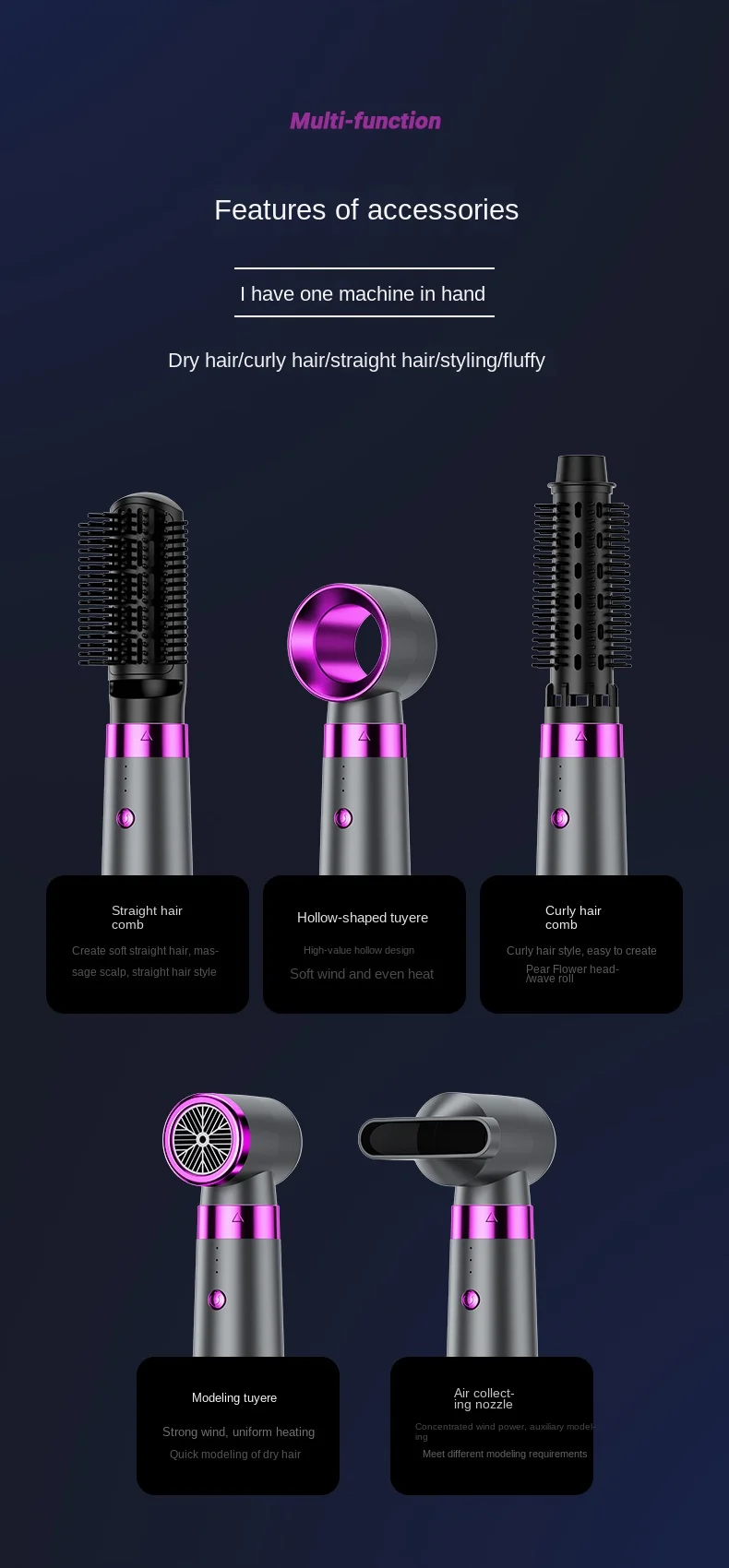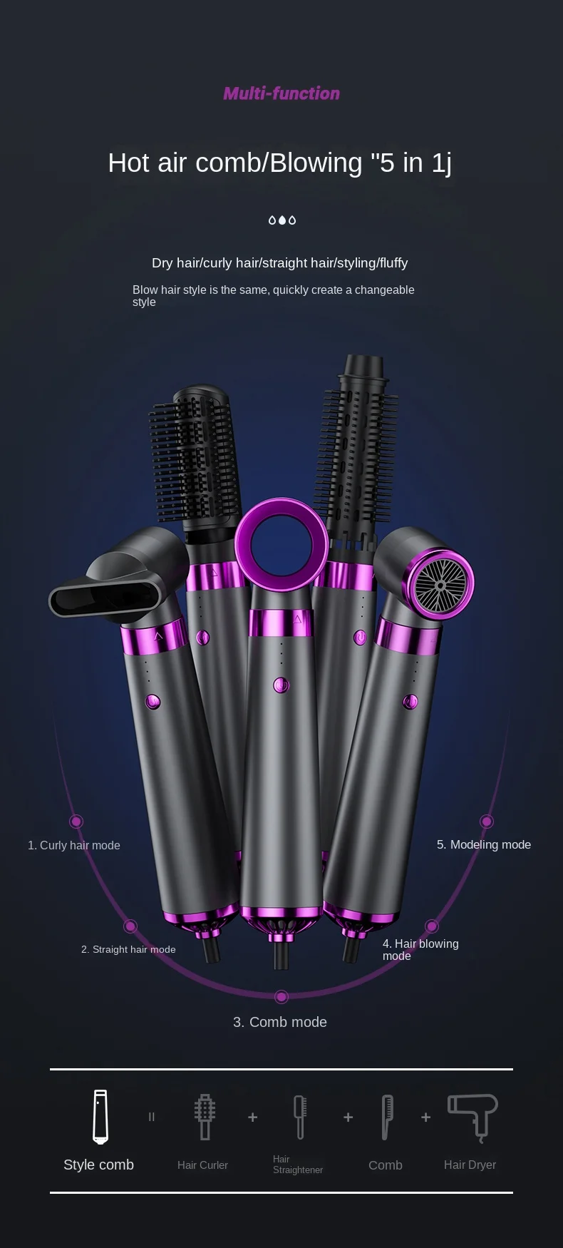 5-In-1 Negative Ion Hair Dryer Home Use Hot Air Comb Hair Straightening and Curling Hair Styling Curling Iron Professional Hair